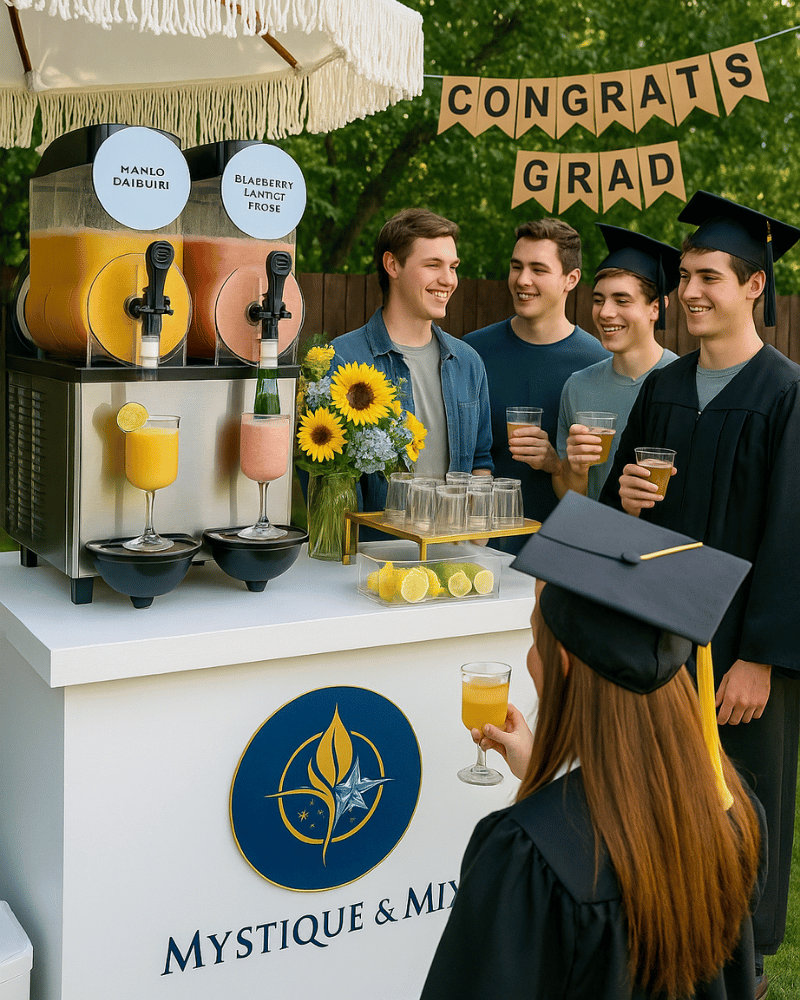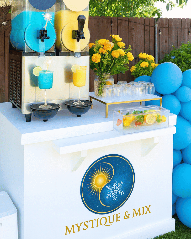Mystique & Mix is your all-in-one mobile frozen cocktail bar designed to make your event unforgettable. Whether it’s a luxe corporate affair, an electrifying dance night, or a colorful backyard birthday bash, our slushy creations and themed service options bring both elegance and energy to the mix.